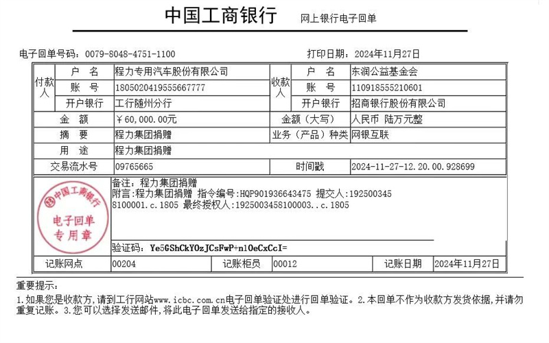 “產(chǎn)業(yè)興旺造福一方,托起千萬個夢想”、“深耕沃土實(shí)干興邦,共同富裕初心不忘”,“程力人有擔(dān)當(dāng)……”,這是中國民企500強(qiáng)程力汽車集團(tuán)股份有限公司《程力之歌》中激昂豪邁歌詞的真情流露,也是程力人勇于踐行社會公益事業(yè)的真實(shí)寫照;程力人20余年來砥礪奮進(jìn),始終把公益事業(yè)放在集團(tuán)公司發(fā)展的重要位置,堅持做最有溫度最有擔(dān)當(dāng)?shù)膼坌钠髽I(yè)楷模,程力人公益之路愈久彌新不遺余力,譜寫了一曲曲令人動容的新時代贊歌,那些過往的精彩畫卷仿佛蒙太奇一般呈現(xiàn)在我們眼前。 2024年11月27日,程力汽車集團(tuán)旗下核心企業(yè)----程力專用汽車股份有限公司,向東潤公益基金會捐款60000元,用于弘揚(yáng)公益精神和助力國家科學(xué)人才培育,以及賑災(zāi)濟(jì)難、撫貧濟(jì)困、獎教助學(xué),改善經(jīng)濟(jì)欠發(fā)達(dá)地區(qū)青少年的生活、學(xué)習(xí)條件,幫助其提高自身發(fā)展能力,為國家培養(yǎng)具有國際競爭力的新一代人才做貢獻(xiàn)。 這雖然只是區(qū)區(qū)6萬元愛心捐贈,但它卻是程力汽車集團(tuán)二十年如一日做公益事業(yè),花費(fèi)數(shù)千萬巨資中的涓涓細(xì)流,是聚溪水成滄海的重要源泉,是生命的贊歌,是無私的奉獻(xiàn);是賑災(zāi)濟(jì)難、扶貧濟(jì)困,獎教助學(xué)培養(yǎng)人才的大愛善舉,久久為功必成燎原之勢。 上圖:程力汽車集團(tuán)承接的全國工商聯(lián)“萬企興萬村”共建鄉(xiāng)村振興對口幫扶縣----貴州省劍河縣,程力第二批捐贈消防灑水車現(xiàn)場,該縣縣委書記楊勝朝致答謝詞。