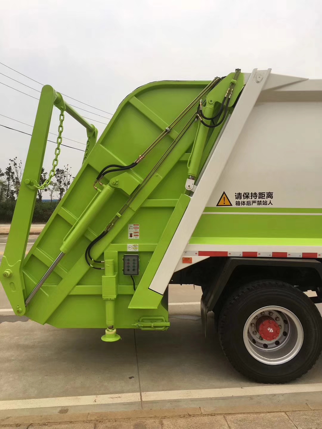 新款壓縮垃圾車,采用高強度錳鋼制成箱體,箱體邊框采用弧形制作工藝,大大加強了箱體結(jié)構(gòu)的強度和使用壽命。