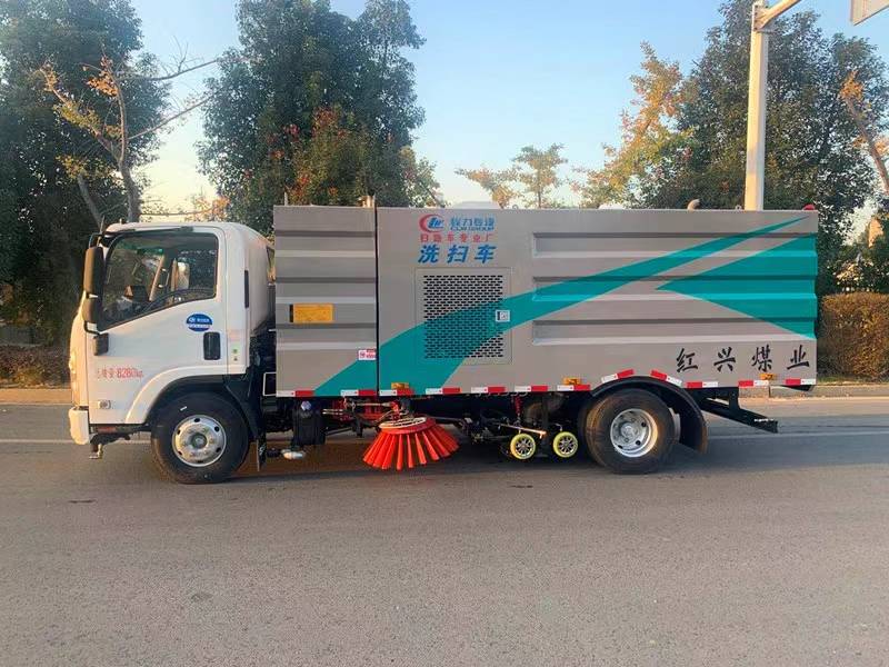 KV100P/KV600底盤配700P駕駛室:120馬力國六五十鈴4KH1CN6LB發(fā)動機配五十鈴5檔變速器,或132馬力國六4KH1CN6HB發(fā)動機配五十鈴6檔變速器,帶空調(diào),方向助力,多功能液晶儀表盤,前橋3噸,后橋5噸,帶ABS,斷氣剎(或者油剎),駕駛室可翻轉(zhuǎn),700副梁車型標配700R16輪胎車架幅高176MM,800副梁車型標配750R16輪胎車架幅高216MM。 湖北程力國六五十鈴8方洗掃車慶鈴五十鈴洗掃車配置: 1、帶2個中置掃盤;中置超寬吸嘴;江鈴64kW增壓副發(fā)動機;臺灣液壓閥;大力馬達;德國高壓水泵;威龍低壓泵;3mm不銹鋼垃圾箱;不銹鋼水箱;德國控制器;尾部箭頭燈;機油、垃圾箱、水箱均帶防溢或低位報警裝置;倒車及洗掃狀態(tài)室內(nèi)監(jiān)視器;多種語音提示;防傾倒垃圾翻車保護、檢修安全保護;20m高壓沖洗卷盤;刷臂轉(zhuǎn)動機構(gòu)使用德國進口高新耐磨工程隔套,免打黃油;精密冷彎無縫液壓油管;CAN總線運動控制器一鍵電腦控制。 2、洗掃寬度3.2m;吸入粒度φ110mm。 多功能洗掃車具有路面清洗、路面清掃、路緣清洗、路緣和路緣石立面洗刷、低壓沖刷、噴霧除塵等多功能。有“全洗掃”、“左洗掃”、 “右洗掃”、 “全掃”、 “左掃”、 “右掃”等多種作業(yè)方式可選擇。選擇“全洗掃”方式清洗廣場和路面,清洗效率高作用好,洗凈率達90%以上。選擇“左洗掃”或“右洗掃”方式清洗路面和路緣、洗刷路緣石立面。需求進行路面清掃或路面保潔作業(yè)時,可選擇掃路方式。需求噴霧除塵時,可敞開噴霧設(shè)備,進行噴霧除塵作業(yè)?梢韵駷⑺囅嗤瑢β访孢M行低壓沖刷作業(yè)。 湖北程力國六五十鈴8方洗掃車多方位圖片: 湖北程力國六五十鈴8方洗掃車多功能洗掃車適用于城市道路、高速公路、廣場、機場、碼頭、遂道、橋梁、隔絕墻面、路緣和路緣石立面的機械化清洗、清掃、噴霧降塵等清潔作業(yè)。